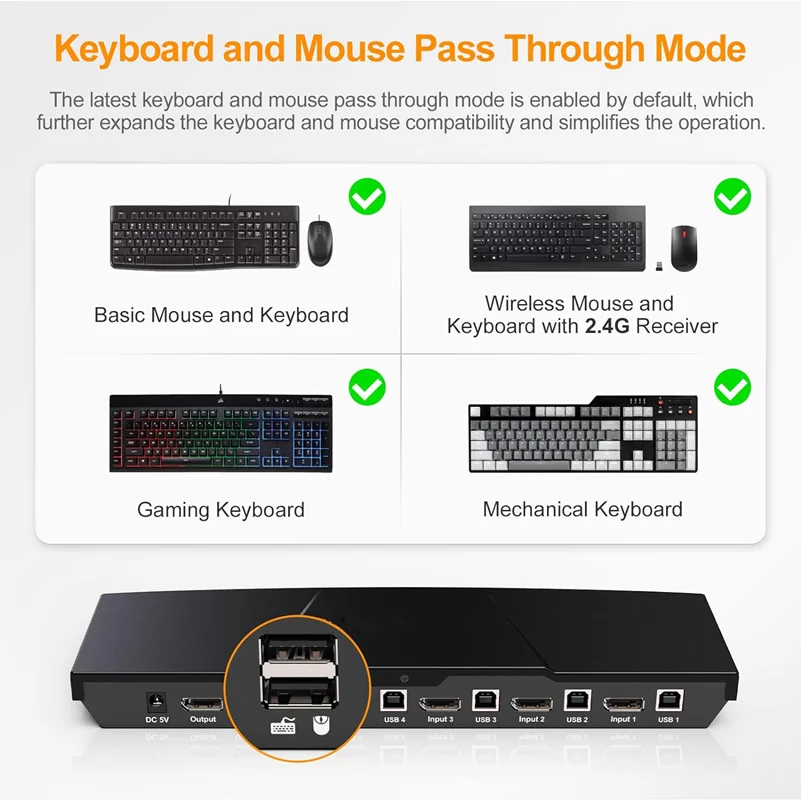 قابلیت اشتراک گذاری لوازم جانبی از پورت USB بین ورودی ها نظیر Printer ,U disk و ...